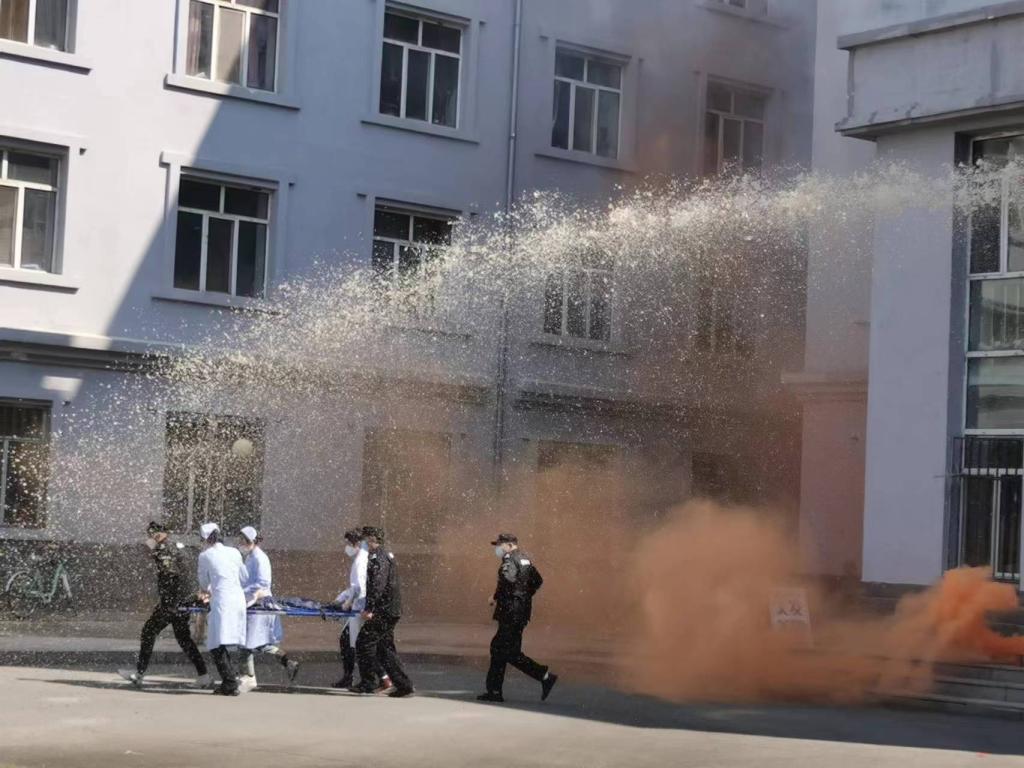 演练开始后,工作人员迅速到达各自岗位,学生按照演练方案要求,迅速沿指定安全出口和疏散路线有序撤离学生公寓楼,疏散到指定集合地点。整个演练过程井然有序,展现了我校师生良好的快速反应能力。演练活动中,工作人员详细讲解灭火常识、火灾预防基本知识、火情报警常识、初期火灾处置及逃生等内容。同时,校医院的医护人员为同学们讲授了心肺复苏的紧急救护知识,并进行现场示范。